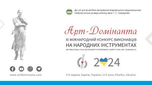 Шановні друзі! Запрошуємо вас взяти участь у XІIІ Міжнародному конкурсі виконавців на народних інструментах «Арт-Домінанта» | 25-31 травня 2026 р., Харків, Україна Ключова інформація...